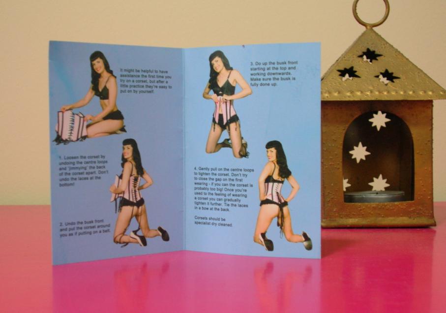 Une petite carte a été fournie avec le corset, qui explique comment le mettre et l’entretenir. Cela ne vous apprendra pas grand chose, mais je la trouve charmante!