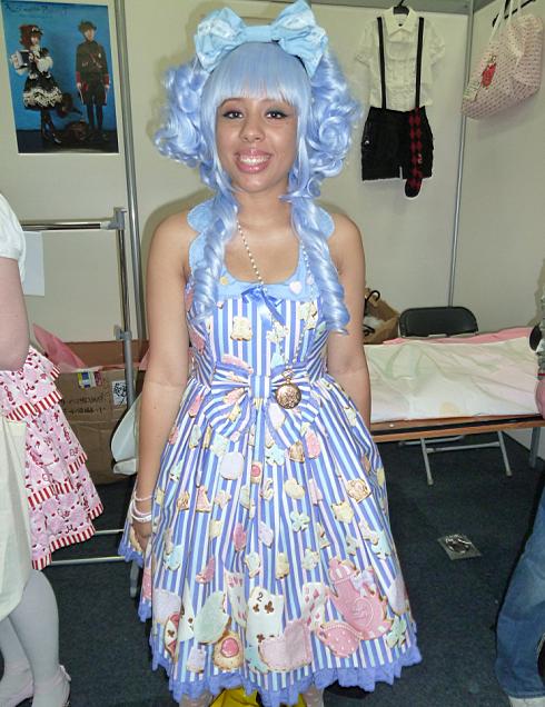 Cette jolie fille était délicieusement bien habillée avec sa robe qui rappelle le Tea Party de Alice aux Pays des Merveilles. De toutes les filles au Hyper Japan, je trouvais sa tenue la plus réussie, et parfaitement coordonné à ses cheveux et son serre-tête.
