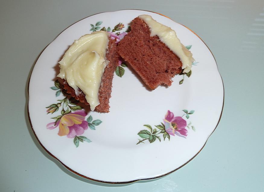Les cupcakes Red Velvet sont composés d’une génoise qui a la particularité d’être… rouge, et le glaçage est au cream cheese. La génoise est très légère et on retrouve un goût chocolaté, mais sans la lourdeur des cupcakes au chocolat classiques.