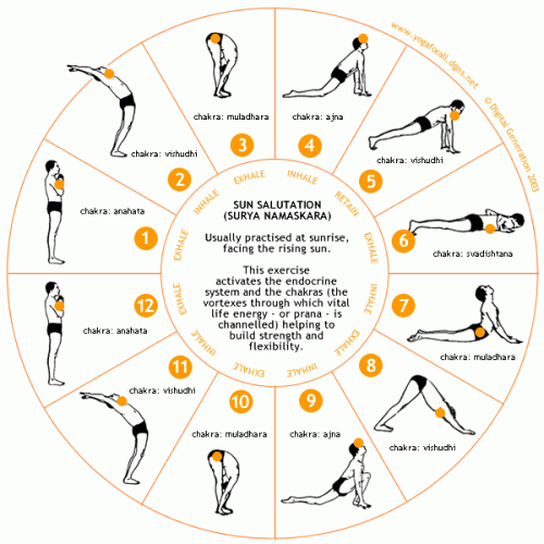 Nous avons commencé le cours en travaillant la respiration, puis nous avons enchainé sur le Surya Namaskara (la salutation au soleil). Nous avons appris à faire la Salutation au Soleil de trois façons différentes, et nous enchaînons les mouvements de façon lente puis rapide. Chaque salutation a été répétée trois fois.