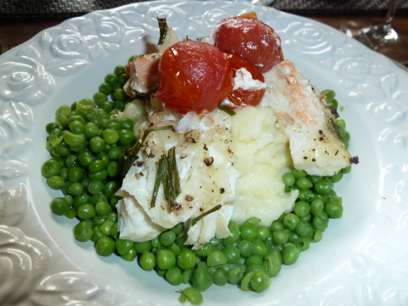 4/En fin de cuisson du poisson, y ajouter les tomates cerise, y verser un filet d’huile d’olive. Lorsque les tomates sont tendres et le poisson cuit, servez!