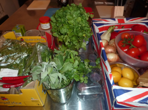 Miam miam! De la coriandre, de la sauge, de la menthe fraîche, des pommes de terre, tomates, échalotes, de la fenouil, des citrons, des figues… Que de belles légumes de qualité qui donnent vraiment envie!