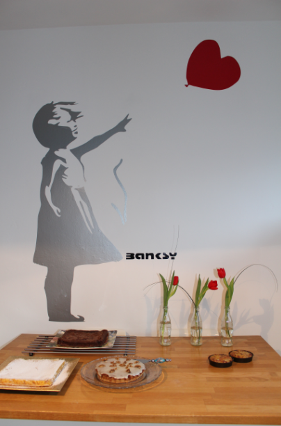 La déco est très chouette, mention spéciale pour le sticker Banksy que j’ai vu chez des amis aussi et qui me plaît beaucoup!