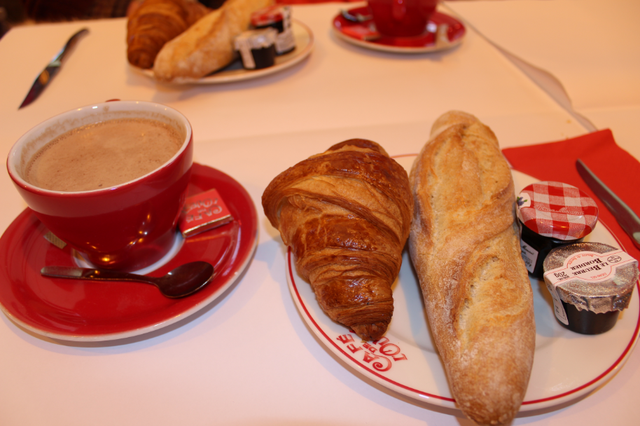 Nous avons commencé la journée par un bon petit déjeuner au Café de l’Ouest, où j’ai dégusté un délicieux croissant avec beurre et confiture aux myrtilles, accompagné de pain et d’un chocolat chaud. J’adore les petit déjeuner à la française!