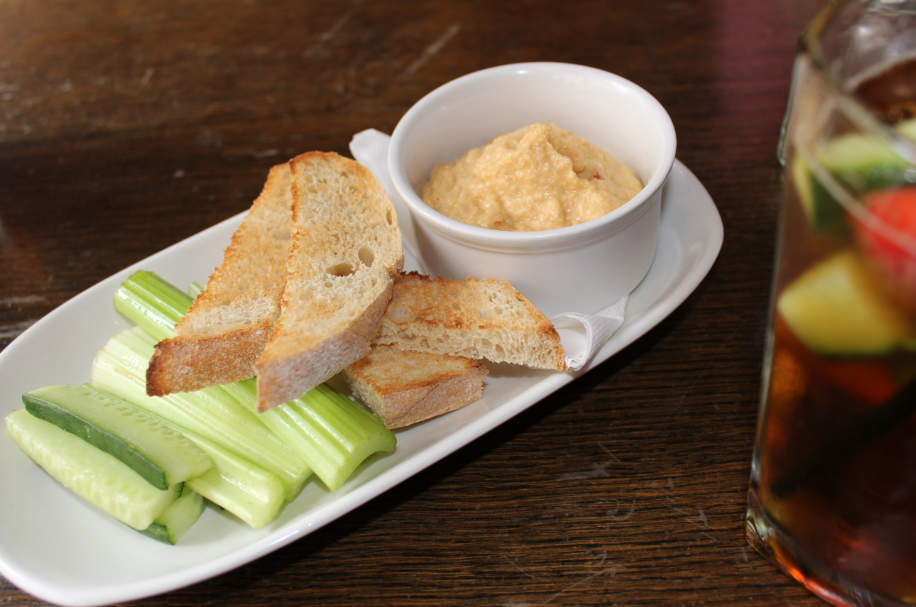En entrée, nous avons partagé des crudités avec un peu d’houmous aux tomates séchées, c’était si bon! Le houmous c’est vraiment ma lubie du moment: