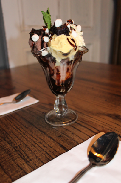 Hier il ne faisait pas très beau, donc nous avons passé plus de deux heures au restaurant, à papoter et à siroter une limonade. Comme par magie, nous avons trouvé de la place pour partager un Chocolate Brownie Sundae, attention, une vraie tuerie! Le meilleur Sundae que j’ai pu déguster à Londres! Il s’agit d’une glace à la vanille et au chocolat, avec de très gros morceaux de Brownie et de chamallow! Un vrai régal que je vous recommande fortement: