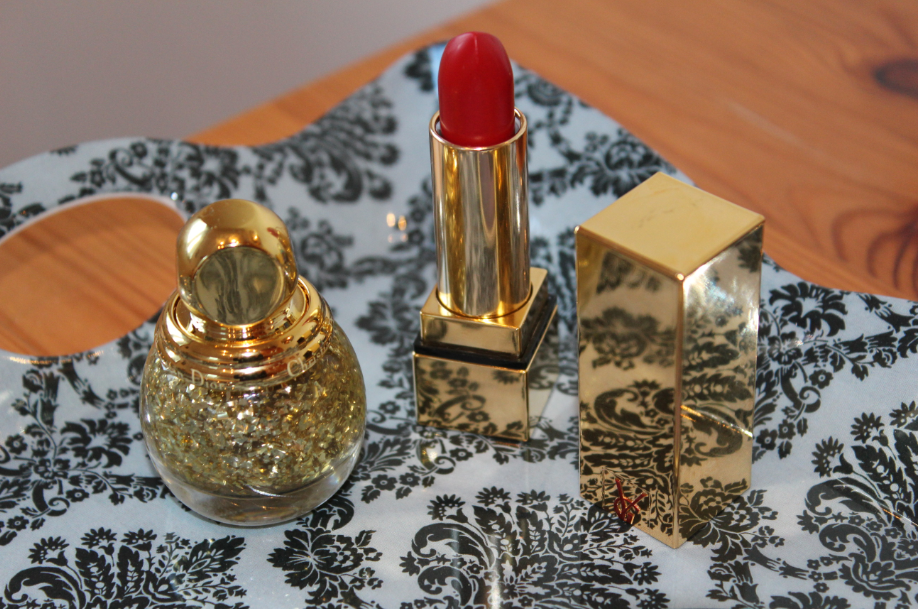 4. J’ai terminé ma manucure avec une couche du top coat Dior effet Feuille d’Or que j’ai reçu à Noël. Quel joli effet! Ce ne sont pas des paillettes, mais bien des petites feuilles dorées, c’est chic!