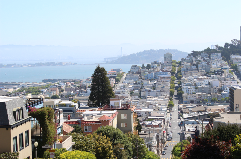 Depuis Lombard Street, les vues sont merveilleuses! C’est encore un quartier où il faut prévoir des chaussures plates pour marcher, car ça monte et ça descend drôlement. La bonne nouvelle c’est qu’une fois arrivée en haut de Lombard Street, il n’y a plus qu’à descendre (vers Ghirardelli Square pour ma part!).