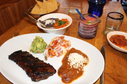 Avant-hier soir j’ai dîné à Rosa Mexicano, un restaurant mexicain à San Francisco, juste à côté de l’hôtel. Je me suis offert un margarita glacé à la grenade (miam! je retournerai bien pour essayer leur margarita à la mangue!) et j’ai essayé le bœuf mariné servi avec du riz, des black beans, un peu de guacamole et des piments mijotés. C’était très goûteux et copieux, et plutôt épicé! Le tout était drôlement bon, je vous recommande ce restaurant.