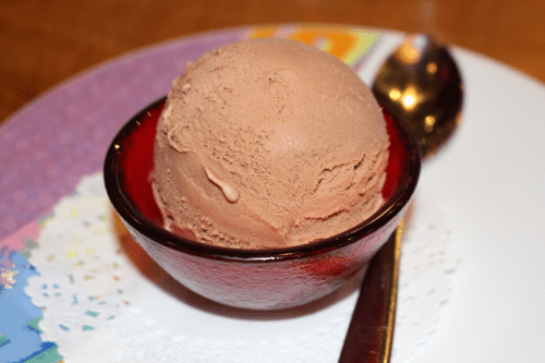 Pour terminer le repas sur une touche sucrée, une boule de glace au chocolat amer fait parfaitement l’affaire. C’était frais et délicieux, exactement ce qu’il me fallait après le dîner épicé!