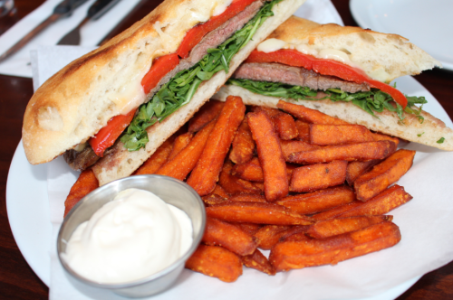 Pour ma part j’ai pris deux entrées en guise de dîner car ces petits plats à partager me semblaient être particulièrement bons. J’ai essayé les aubergines à la mozzarella, que j’ai beaucoup aimé. C’était servi avec une purée de tomates, miam!