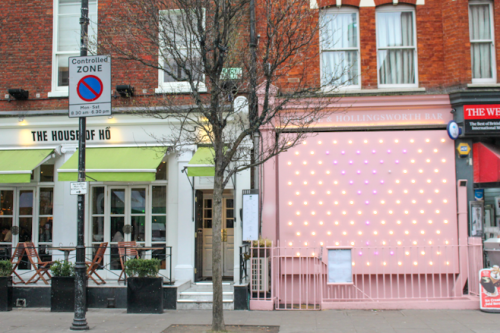Enfin, voici un bar que j’aime beaucoup, Bourne & Hollingsworth! Ils viennent de refaire leur façade, comme ce rose est mignon. Il faudrait que je retourne voir si l’intérieur du bar a également été rénové.