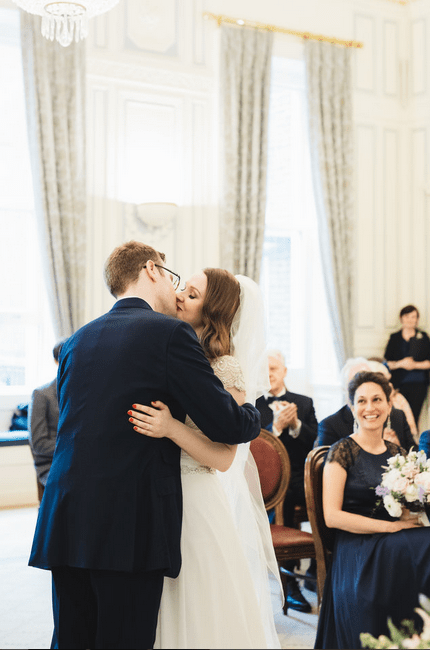 Tout le monde s’est levé, je suis rentrée dans la salle la première, suivie de mes deux bridesmaids. C’était émouvant de voir tous nos amis les plus proches, des amis de longue date, sur lesquels je sais que je peux compter, réunis dans une même pièce afin de célébrer notre amour.