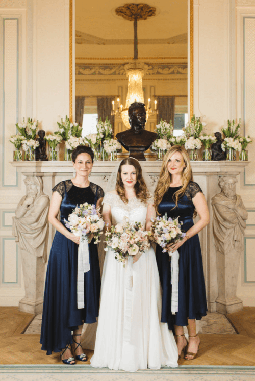 Mes bridesmaids avaient l’addition de quelques fleurs violettes dans leurs bouquets, pour aller avec les robes bleus marines.