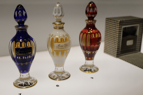 Les robes sont à l’honneur, mais le parfum joue aussi un rôle important. L’expo nous raconte l’importance du parfum pour Christian Dior, que son premier parfum a été influencé par sa petite sœur « Miss Dior » et qu’il pulvérisait généreusement le parfum dans les lieux où ont eu lieu les défilés.