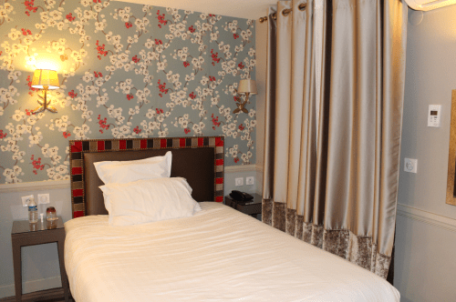 Ma chambre était petite, mais joliment décorée et surtout très calme, ce qui n’est pas toujours évident à Paris. A £250 les deux nuits, je pense que l’hôtel représente un rapport qualité-prix correcte pour Paris. Deux choses m’ont dérangés dans cet hôtel: la salle de bains était très petite et la femme de ménage est rentrée dans la chambre sans frapper. Il n’y avait pas de fermeture à clé séparé dans la chambre, donc rien pour empêcher le personnel de rentrer, ce qui m’a rendu un peu mal à l’aise.