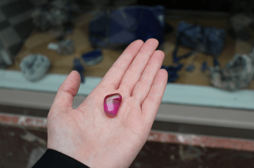 Je suis tombée sur une boutique qui vend des pierres précieuses et semi-précieuses, et j’ai choisi cette jolie pierre rose. Je me suis dit que ce serait mon porte-bonheur pour le reste du séjour!