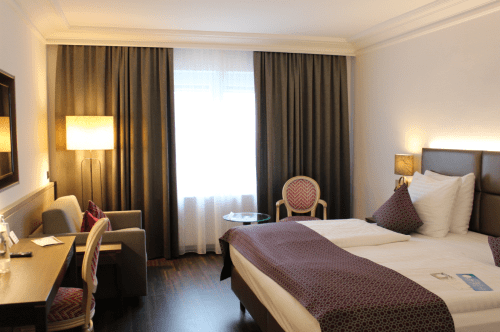 Après cette première promenade dans la ville, nous sommes rentrés à l’hôtel Imlauer Pitter, que je vous conseille. C’est un vrai hôtel 4 étoiles, élégant, avec un personnel très attentionné, des chambres très confortables où tout était de qualité (serviettes de bain énormes et confortables, jolis meubles, des rideaux dans un beau tissu etc). Voici la chambre supérieure: