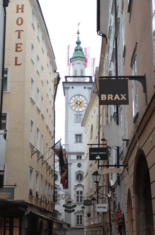 Nous avons passé notre première journée dans la ville à nous y promener tout simplement, à découvrir les lieux. La visite du château était réservé au lendemain! Salzbourg est un ville charmante, constituée d’une multitude de petites ruelles et d’églises. A chaque bout de rue il y a une église!