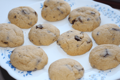 J’espère que vous passez une bonne semaine. Ce week-end, j’ai fait des cookies! Puisque j’avais pris le soin d’apporter la plupart de ce que j’avais dans mes placards Londoniens avec moi en Irlande, j’avais de quoi préparer ces cookies sans aller faire de courses. Par contre, ici je n’ai pas de quoi mesurer les ingrédients, ainsi j’ai plus ou moins fait ces biscuits à l’œil.
