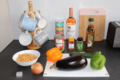 Il suffit de faire revenir les légumes coupés en dès dans un peu d’huile d’olive pendant environ 20 minutes. Une fois que les légumes sont bien dorées, ajouter les tomates, pois chiches, un peu d’eau, le cube de bouillon, et une cuillère à café de cumin, paprika et herbes de Provence. Laisser mijoter de nouveau pendant environ 20 minutes à feu bas puis servir!