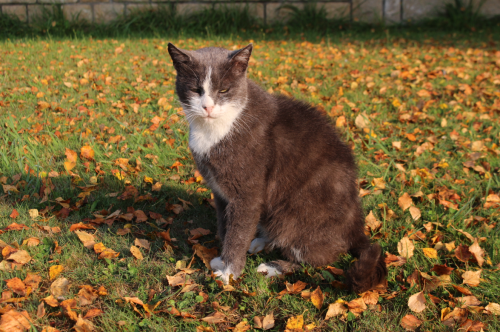 Petit minou dans les feuilles mortes se réchauffent aux derniers rayon de soleil….