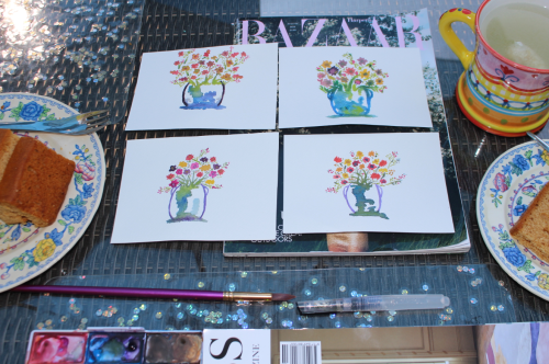 En parlant d’un au revoir à l’été, voici mes dernières petites aquarelles fleuries. J’ai passé un très agréable moment en France à peindre avec ma maman lors d’un week-end à la maison. Le tout accompagné d’un thé et d’une tranche de pain d’épices, bien sûr!