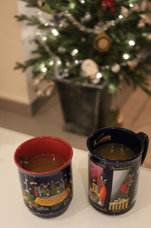 La plupart des familles anglaises et irlandaises fêtent Noël le 25. Notre journée commence assez tôt le matin, car nous nous sommes donnés rendez-vous vers 9hrs30 au pied du sapin. Comme vous pouvez le voir, le père Noël est bien passé pendant la nuit! C’était une si belle matinée, le soleil brillait, j’ai préparé du thé de Noël et du café et ensuite, à nous les cadeaux!
