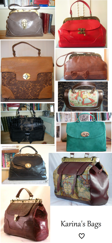 J’ai rencontré Karina en 2009 lorsque j’étais étudiante à Durham dans le nord de l’Angleterre, lors d’un Vintage Fashion Fair à la fac. Karina était très gentille et lorsque je me suis arrêtée pour regarder ses sacs Karina m’a parlé de son métier avec passion! Elle m’a expliqué qu’après des années à travailler dans la mode, en 2008 elle a décidé de lancer sa propre marque de sacs à main: « Karina’s Bags ». A l’époque je n’avais pas les moyens d’acheter un de ses sacs, mais j’avais pris une de ses cartes de visite, en me promettant d’en acheter un avec mon premier salaire. J’étais complétement sous le charme de ses sacs « docteur », inspirés des années 1950. Ses sacs étaient entièrement fait à la main en utilisant de beaux cuirs qui étaient souvent des chutes de matériaux provenant de grandes maisons comme Dior, Gucci ou Mulberry. Quelques mois après cette première rencontre, je suis allée à un autre Vintage Fashion Fair à Newcastle, où Karina avait un petit stand et où on a continué à papoter.