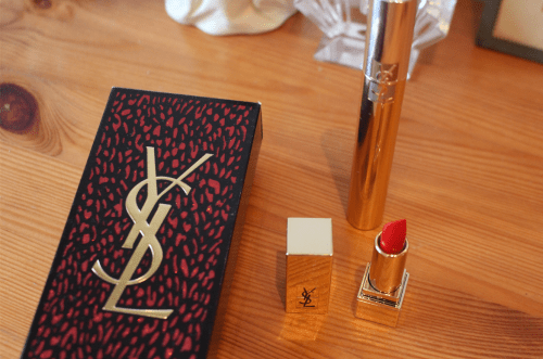 J’ai aussi joli set de maquillage de la part de mon frère, avec un beau rouge à lèvres classique.