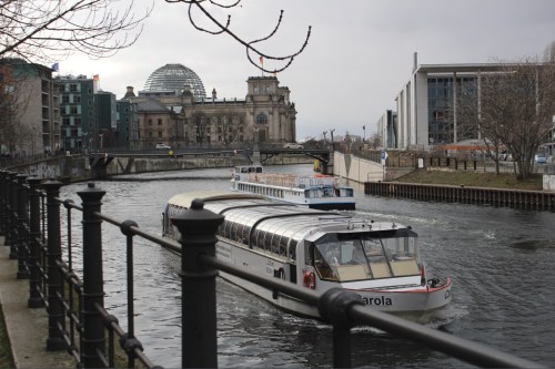 Nous avons poursuivi notre découverte de la ville en nous promenant près de la rivière Spree, où des bateaux mouche montent et descendent la rivière tout doucement.