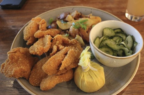 Nous avons sauté le déjeuner, donc nous avons été dîner relativement tôt au restaurant Schnitzelei. Le restaurant est très prisé, et il y avait un fil d’attente, mais comme il était encore tôt nous n’avons pas attendu longtemps. Mon mari aime beaucoup la nourriture allemande mais pour ma part je ne mange pas énormément de viande, donc j’ai opté pour un schnitzel végétarien – c’était des champignons cuits dans de la chapelure, et servis avec une salade de concombres ainsi que des pommes de terre. C’était vraiment très bon! J’ai remarqué qu’il y avait énormément d’options végétariennes et véganes dans tous les restaurants que nous avons visités.