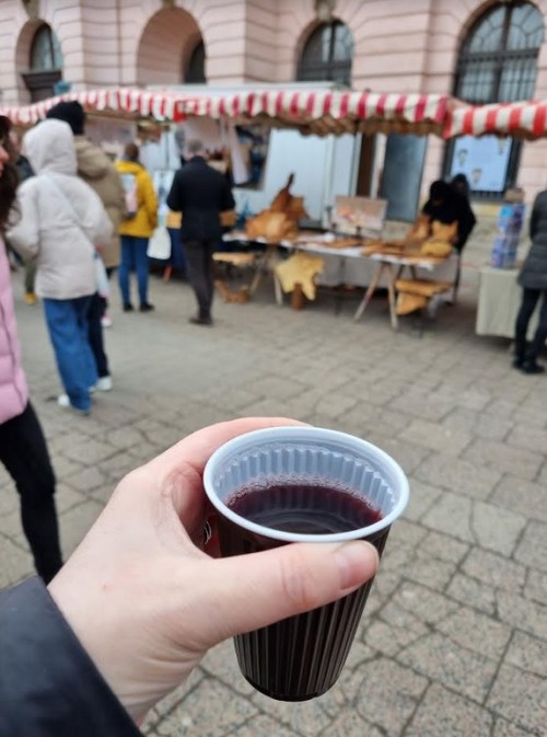 Il faisait bien froid ce jour-là, donc nous avons pris un vin chaud à déguster en faisant le marché.