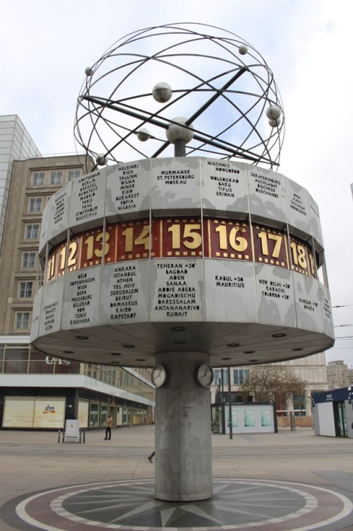 Ci-dessous vous pouvez voir l’horloge universelle d’Alexanderplatz, crée en 1968. C’est intriguant car l’horloge indique l’heure d’une centaine de villes, qui se trouvent sur divers continents.