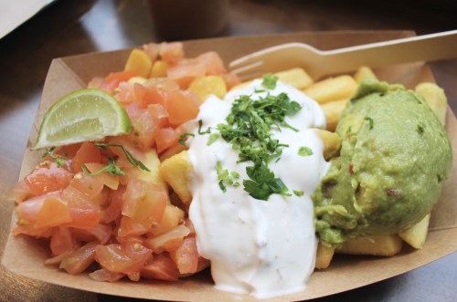 Après la tour TV, il était l’heure de déjeuner. Beaucoup de restaurants étaient fermés, mais nous avons trouvé un petit endroit où manger des frites! J’ai opté pour l’option veggie, avec tomates, guacamole et crème fraîche.