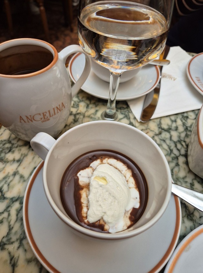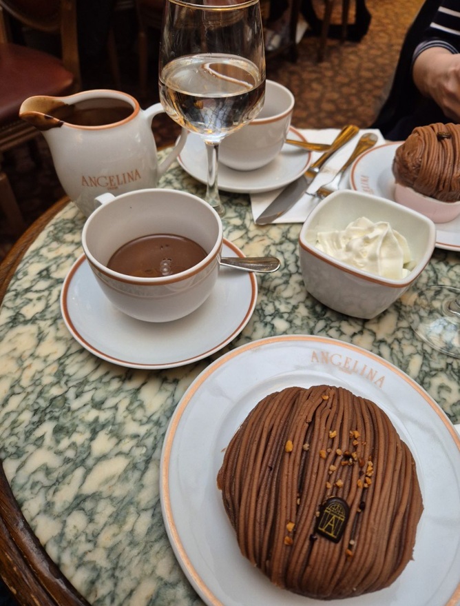 Car en effet, c’était bien l’heure du goûter! Nous avons toutes les deux opté pour un chocolat chaud ainsi qu’un Mont Blanc chez Angelina. Pour ma part j’ai essayé le Mont Blanc au caramel pour la première fois et je n’ai pas été déçue, c’était un vrai régal!