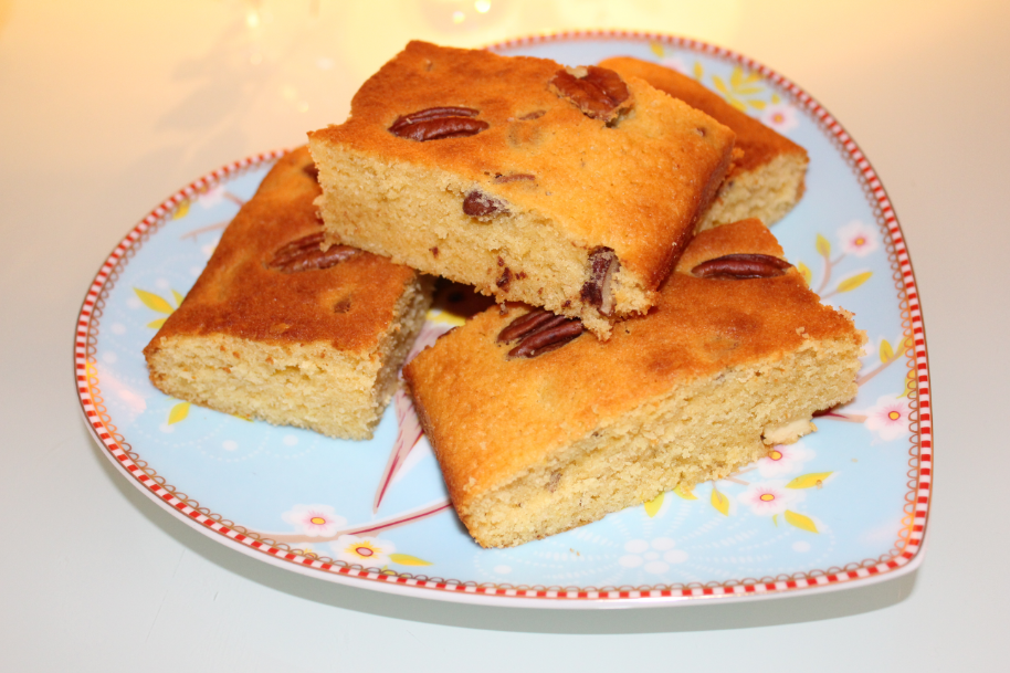 Le week-end dernier j’ai testé les Pecan Blondies, ce sont un peu comme des brownies mais version chocolat blanc, avec des noix de pécan.