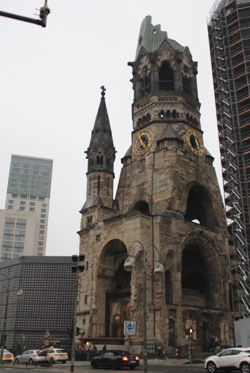 C’était un après-midi bien reposant, mais après quelques heures au Spa il était déjà temps de repartir. Sur la route, j’ai aperçu l’Église Kaiser Wilhelm, une Église protestante qui a été endommagée pendant la guerre, et qui est resté dans son état endommagé. A regarder dans le quartier, je me suis aperçue qu’il ne restait plus que cette Église d’avant la guerre, les autres bâtiments étant modernes.