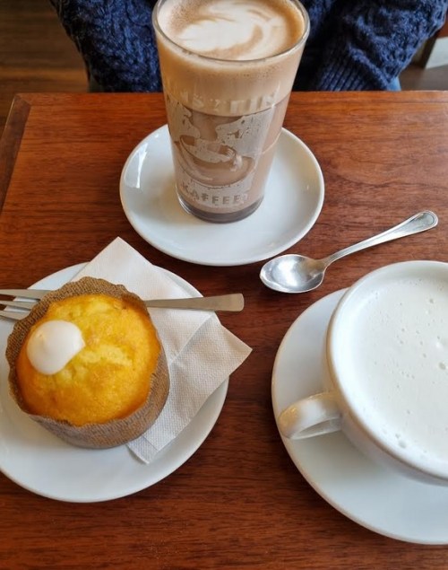 Après un peu de shopping, nous sommes allés prendre un café, j’ai pris un petit latte ainsi qu’un muffin au citron en guise de déjeuner.