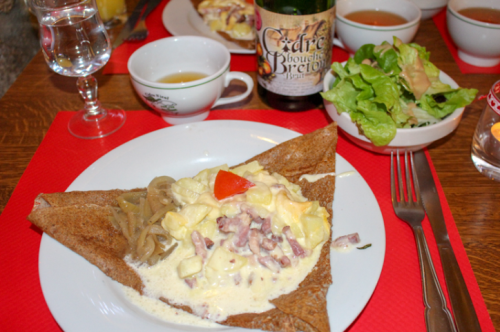 Et une galette aux poireaux, œuf, salade et lardons à la crème pour moi. Miam!