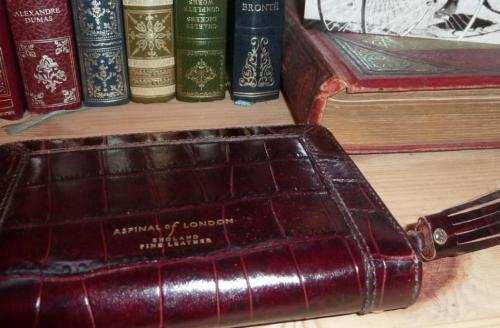 -Aujourd’hui: Youpi, mon anniversaire…! Mini-vacances aussi, j’ai également pris ma journée. Je m’offre une pause gourmande matinale, et je goûte le délicieux chocolat chaud blanc offert par Mlle Acb (j’ai reçu un très chouette coffret de trois chocolat chauds… Je vous en reparlerai lorsque je les aurais tous testés! Merci encore!). J’ouvre mes cartes et quelques petits cadeaux. Dans ma boîte à lettres, entre autres, un très joli porte-monnaie Aspinal of London, pour aller avec mes autres petites choses de la marque! ♥