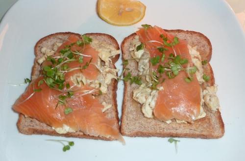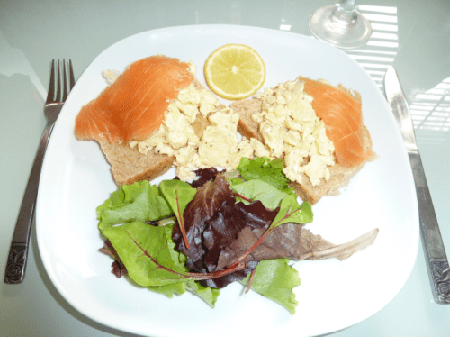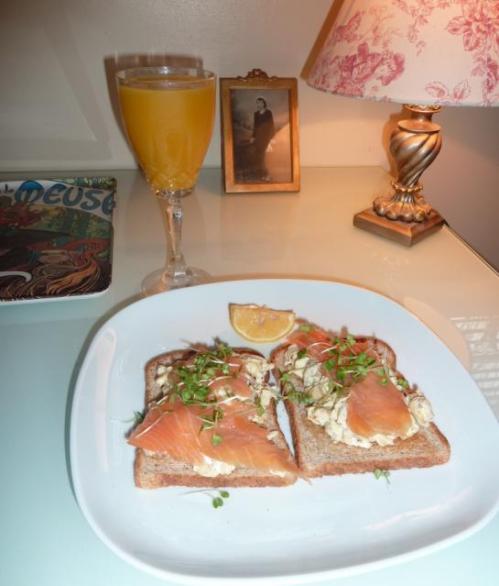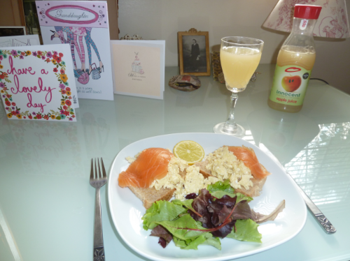 Je vais également me préparer un joli brunch d’anniversaire, avec œufs brouillés, saumon fumé, pain de mie complet et un jus d’orange frais.
