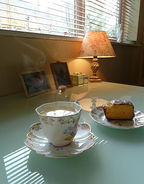 Ci-dessous, voici le mug préféré de ma grand-mère adorée, il me semble que c’était sa tasse « du matin »! L’assiette et les couverts lui appartenaient aussi, en plus de la boîte à bijoux des années 1920 que l’on devine au fond de la photo. ♡