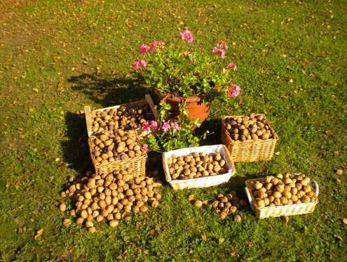 Nous utilisons les noix du jardin pour cette recette! Comme vous pouvez le voir ci-dessus, on en a eu vraiment beaucoup cette année. Un jour il faudrait que je partage la recette du Banana and Walnut Cake de Daddy avec vous…!