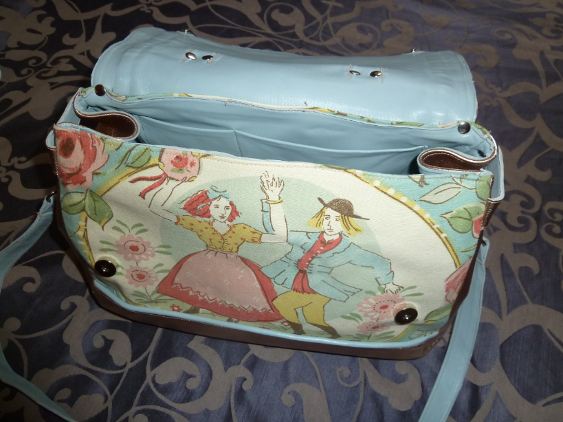 Et comme toujours, ce sont les détails qui me font craquer, une doublure en cuir bleu canard, et le même tissu à l’intérieur du sac, même si c’est une partie qui ne se voir pas lorsqu’on le porte: