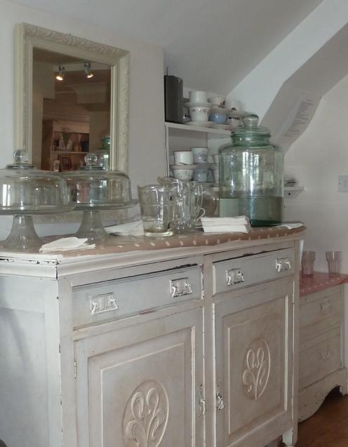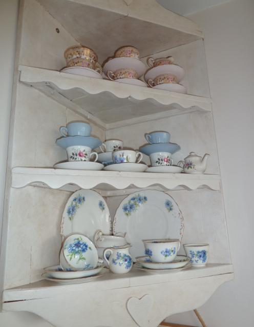 Partout il y a de jolies tasses, rétros, dépareillées… C’est très charmant. Les chaises et tables sont également dépareillées, très shabby chic tout ça!
