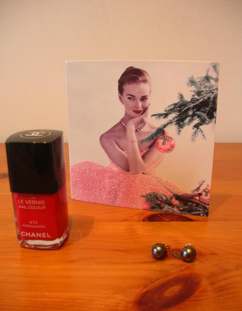 Sur mes ongles le rouge Coromandel de Chanel qui a du être spécialement crée pour les fêtes: C’est un rouge très vif mais avec des petites paillettes dorées très discrètes. Je trouve que cela fait une belle lumière!
