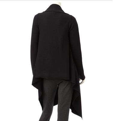 Ce gilet, qui fait vraiment petite veste printanière plus qu’autre chose. C’est un gilet énorme, on jette le tissu par dessus l’épaule pour mieux dessiner la silhouette. En 100% laine, très épais!