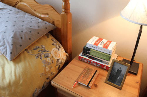 22.00: Il fait nuit noir, le vent continue à souffler. Nous sommes tous les deux fatigués de la semaine donc c’est à la douche puis au lit. Voici les autres objets que j’ai pris avec moi en Irlande: une photo de ma grand-mère Lena, quatre livres et mon agenda. Avant de dormir je griffonne quelques phrases dans mon agenda et je regarde avec nostalgie mes entrées de journal des mois de janvier et février.