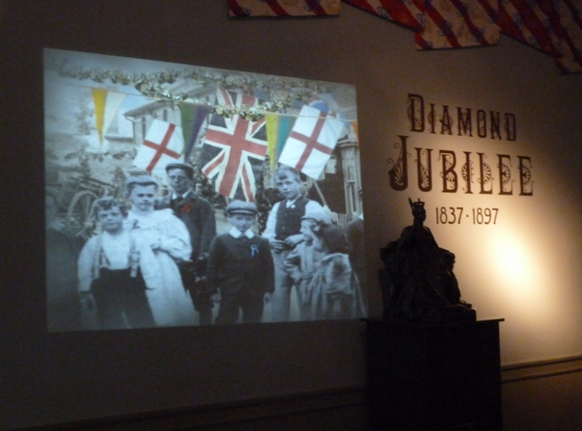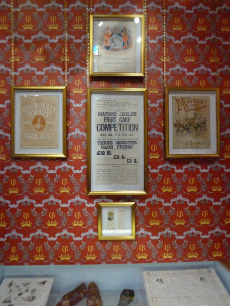 Une des expos qui m’a le plus fait sourire est sur la Jubilee de la Reine Victoria, en 1897. J’ai longuement regardé les affiches d’époque, on y retrouve également tout plein de souvenirs de la Diamond Jubilee comme la porcelaine, les figurines, les jeux de cartes… J’ai adoré voir les posters qui par exemple nous signalent un concours de pâtisserie, et indiquent qu’il y a de superbes prix à gagner: £10 10d sera remis à la gagnante en guise de premier prix:
